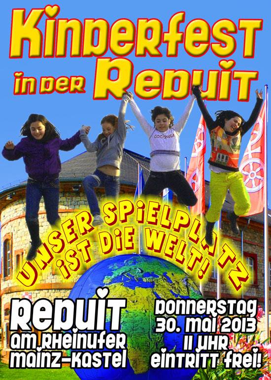Am 30.05.2013 findet das Kinderfest in der Reduit in Mainz-Kastel statt. Unter dem Motto „Unser Spielplatz ist die Welt!“ gibt es tolle Spielestationen zu jedem Kontinent.