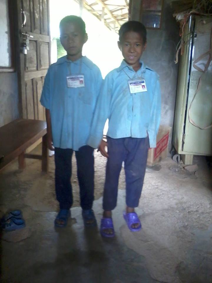 Außerdem hat Ganga Zwillinge, die jeden Tag 45 Minuten barfuß zur Schule gelaufen sind, mit dem „traditionellen“ Schuhwerk versorgt: Plastiksandalen.
