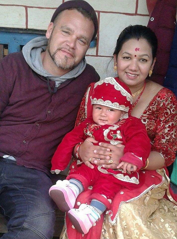 Direkt nach der Yoga-Ausbildung eilte ich wieder, diesmal mit Mark aus Dänemark (er ist Volunteer im Namaste Childrens House in Pokhara, daher kennen wir uns seit einigen Monaten), nach Dedhgaun zu unseren Freunden und unserem Projekt. Der erste Tag im Dorf stand ganz im Zeichen des Sohnes unseres Projektkoordinators Dipendra. Divyam ist jetzt 6 Monate alt und darf nun feste Nahrung zu sich nehmen. Das wird in Nepal besonders gefeiert, mit der sogenannten „Rice-Feeding-Zeremonie“. Divyam mochte den Reis jedoch noch nicht so gerne und brüllte die komplette Zeremonie hindurch.