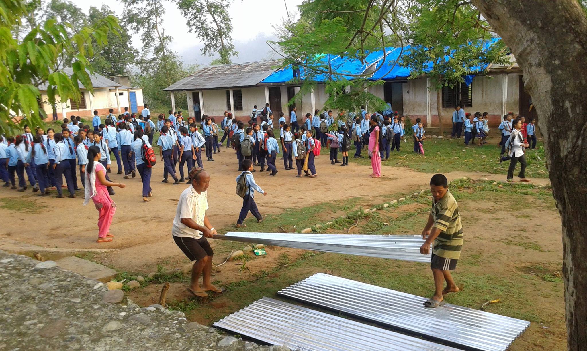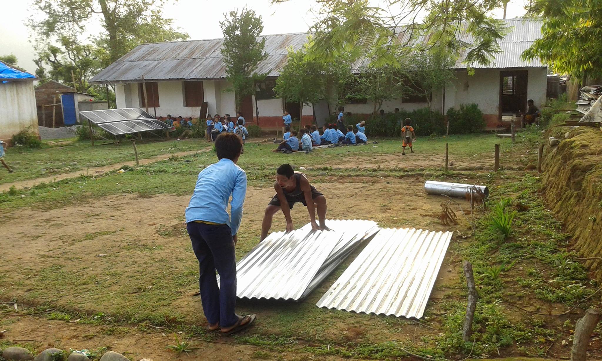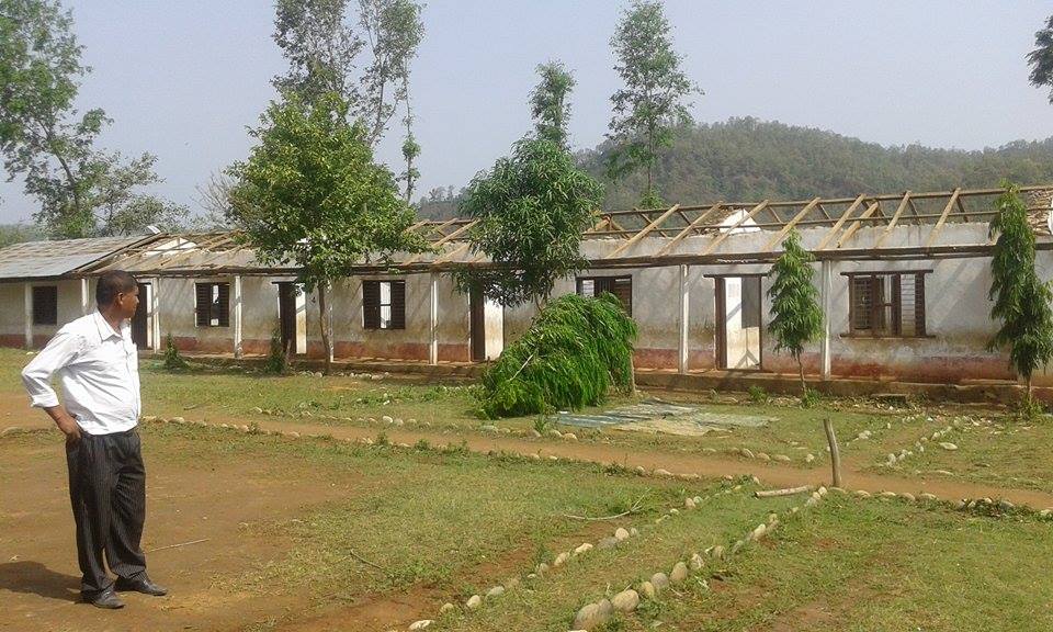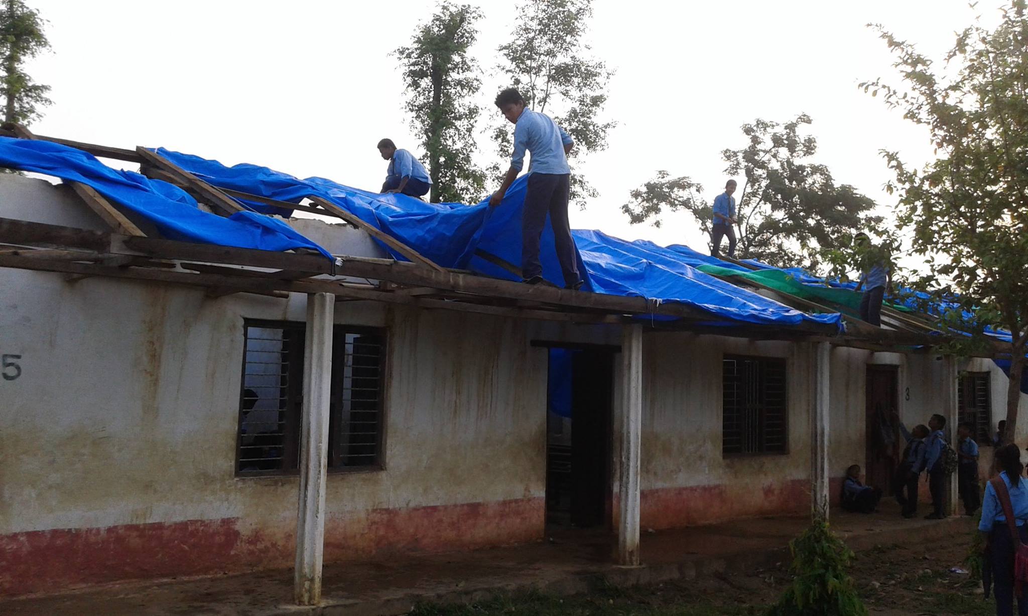 Im Anschluss an die 2 großen Erdbeben (und ungefähr 300! Nachbeben) hat ein schwerer Sturm das Dach der Balkalyan Lower Secondary School in Dedhgaun nahezu komplett zerstört.
