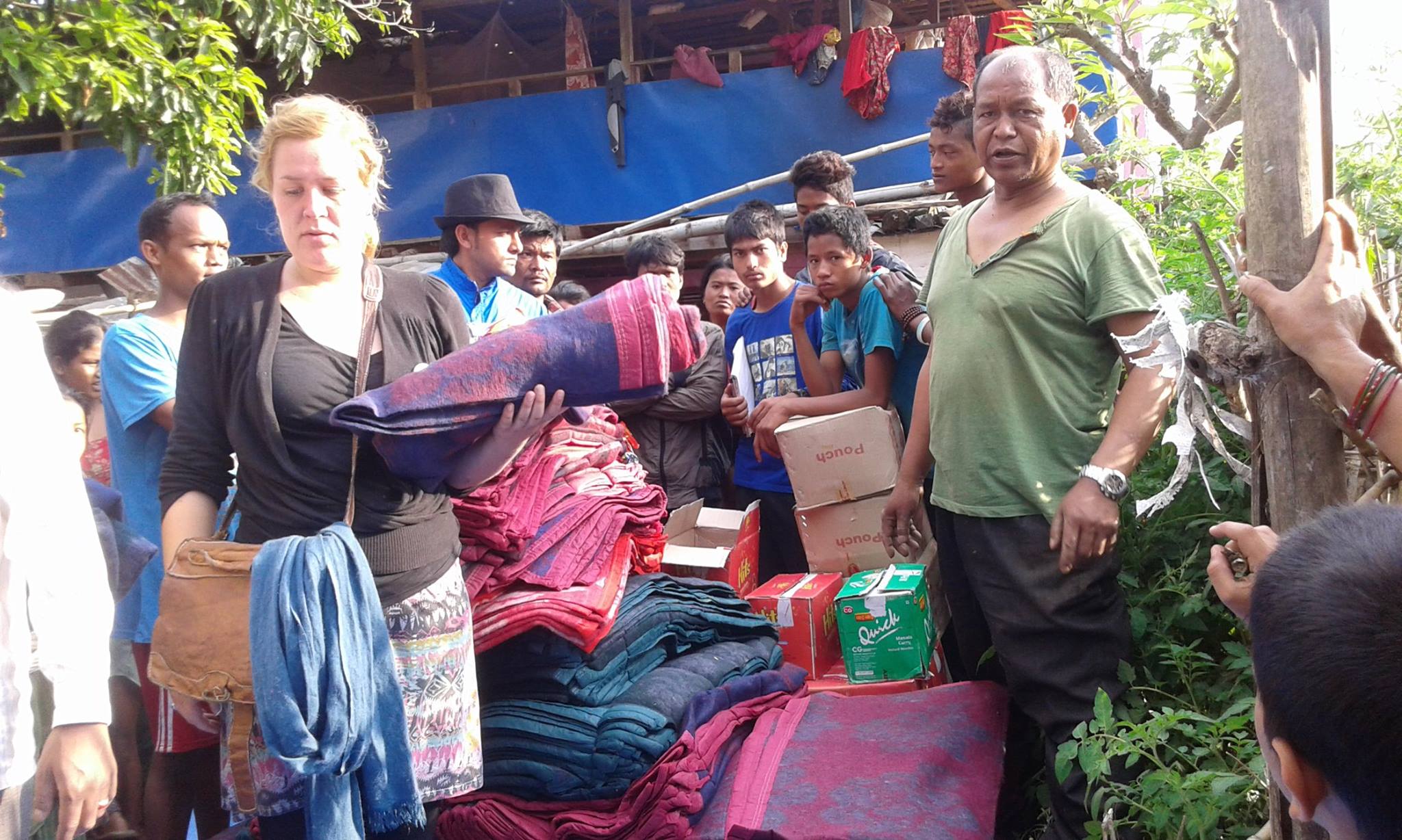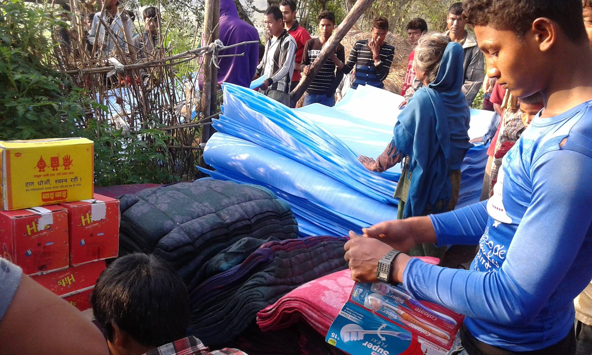 Am Samstag erreichte unser Projektkoordinator Dipendra Biswakarma gemeinsam mit seiner Frau und weiteren Freunden Nuwakot. Eine Woche nach dem Beben kam bis dahin keinerlei Hilfe in dieser stark zerstörten Region an. Umso mehr freuten sich die Menschen über die durch FoC-Nepal e.V. bereitgestellten Materialien: Schlafsäcke, Matten, Schals, Planen sowie Kekse und Tütensuppen konnten den Menschen bereitgestellt werden und bieten ihnen zumindest Schutz vor dem anhaltenden Regen und der nächtlichen Kälte.