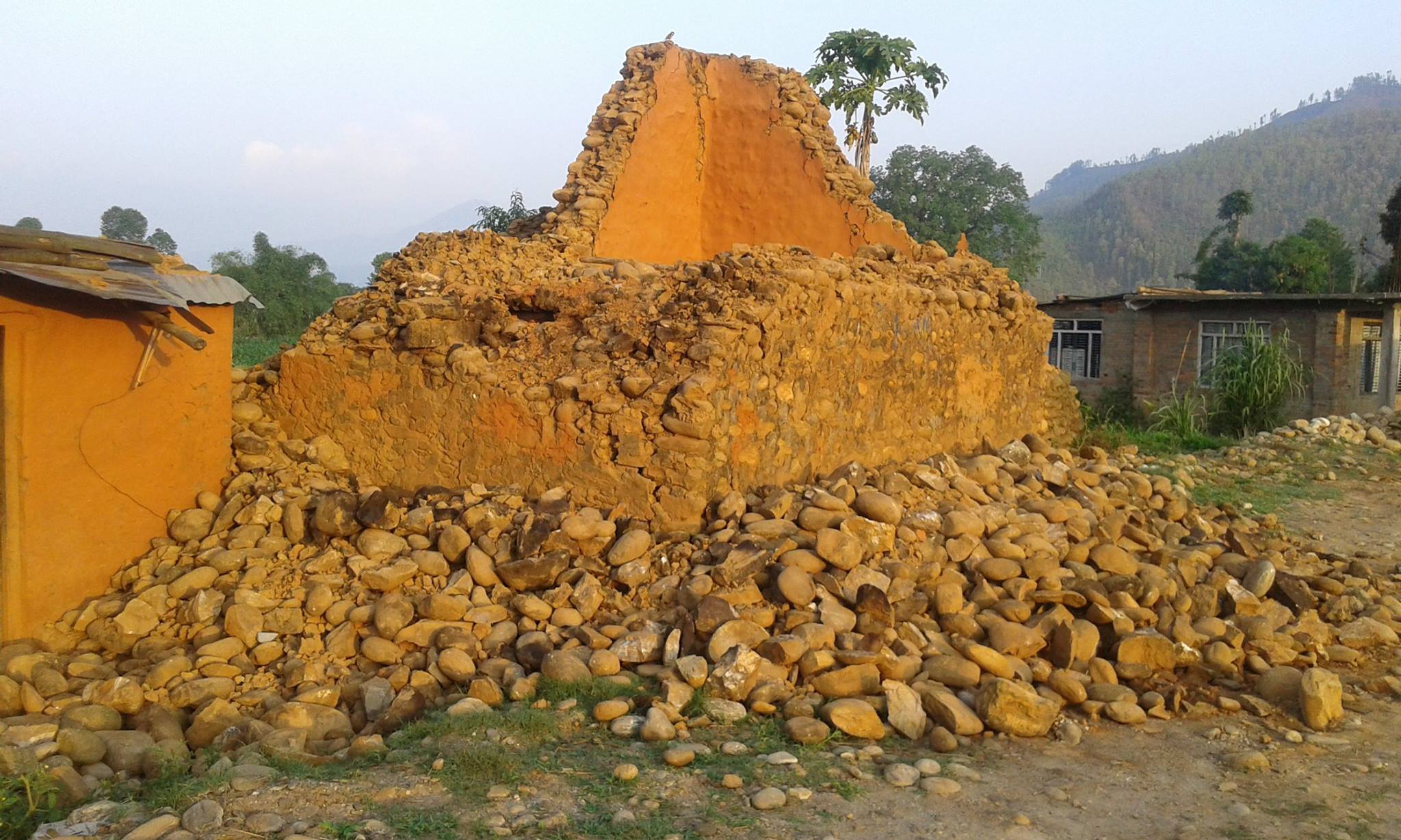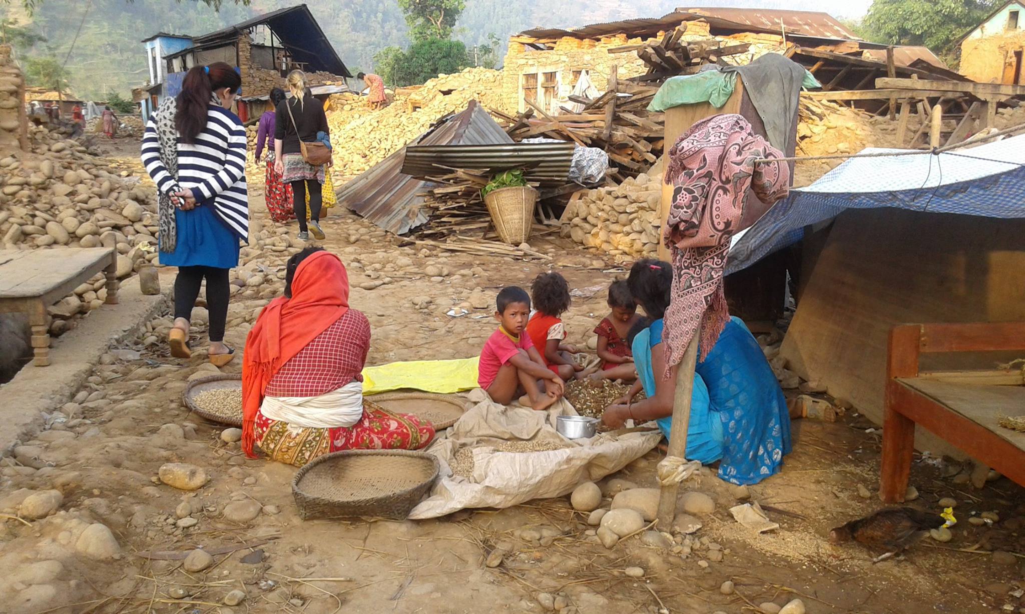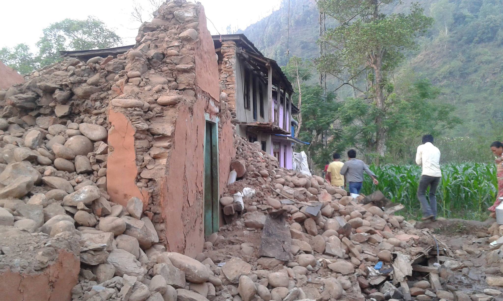 Währenddessen erreichen uns nach und nach mehr Informationen aus unserer Projektregion: Insgesamt 29 Häuser wurden komplett zerstört, nahezu alle Häuser haben Risse und sind mehr oder weniger schwer beschädigt. In den vergangenen Tagen haben auch die Dorfbewohner selbst begonnen Spenden zu sammeln. Viele dieser Gelder dienten als Rücklagen für Krankheiten oder die Ausbildung der Kinder, nun sind die Menschen bereit einen Teil ihrer Rücklagen für betroffene Landsleute zu spenden. Sehr beeindruckend!!!